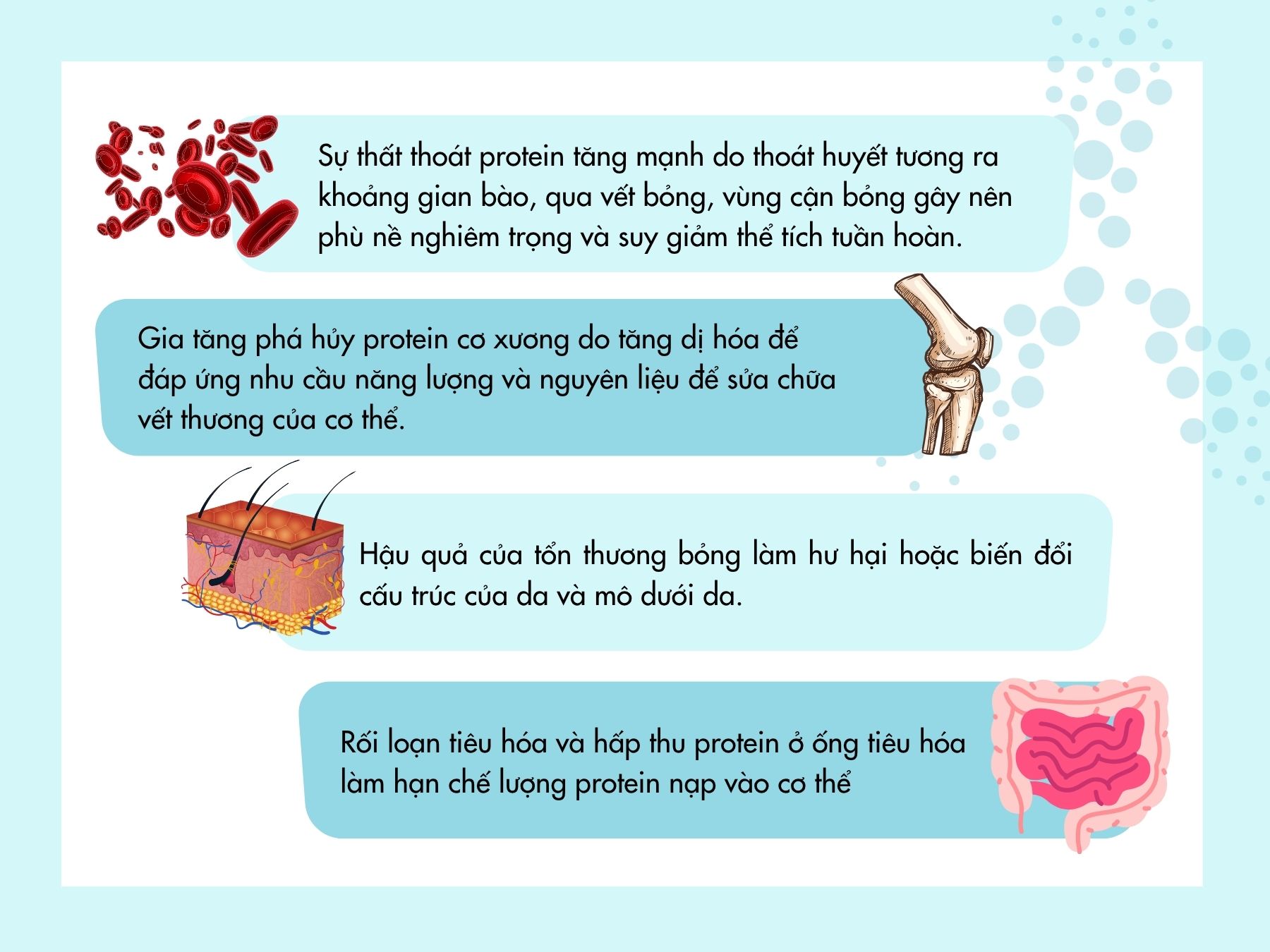 Có nhiều nguyên nhân dẫn đến rối loạn chuyển hóa protein ở bệnh nhân bỏng: