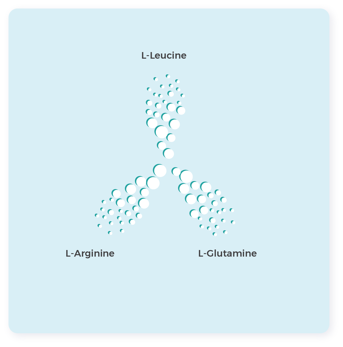 L-Glutamine là acid amin chiếm tỷ lệ nhiều nhất trong toàn bộ acid amin của cơ thể (60%), là nguồn năng lượng và nguyên liệu chính cho tổng hợp protein và tế bào phân chia nhanh trong quá trình sửa chữa vết thương. Ngoài ra, L-Glutamine còn giúp kích thích tăng sinh tế bào lympho, điều hòa đáp ứng viêm và miễn dịch, bảo vệ tế bào.
