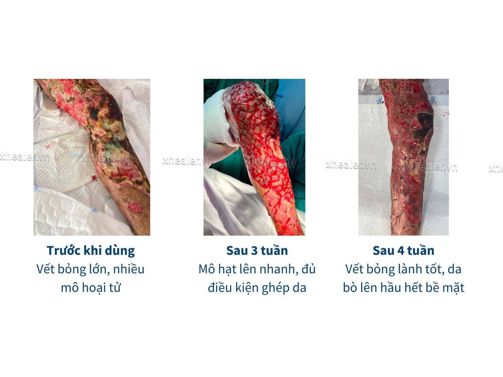 BN sau đây được chẩn đoán bỏng toàn thân độ III-IV do nhiệt, xảy ra do tai nạn sinh hoạt. BN đã trải qua 8 lần phẫu thuật, trong đó 2 lần cắt lọc và 6 lần ghép da, kết hợp với bổ sung dinh dưỡng tích cực thông qua ăn uống, truyền tĩnh mạch kết hợp với sử dụng X-Healer 3 gói/ngày để bổ sung hàm lượng cao Arginine và Glutamine. Kết quả là mô hạt phát triển tốt, tưới máu tốt, tạo điều kiện thuận lợi cho phẫu thuật ghép da và sau 4 tuần điều trị, BN có thể đi lại được và xuất viện về nhà.