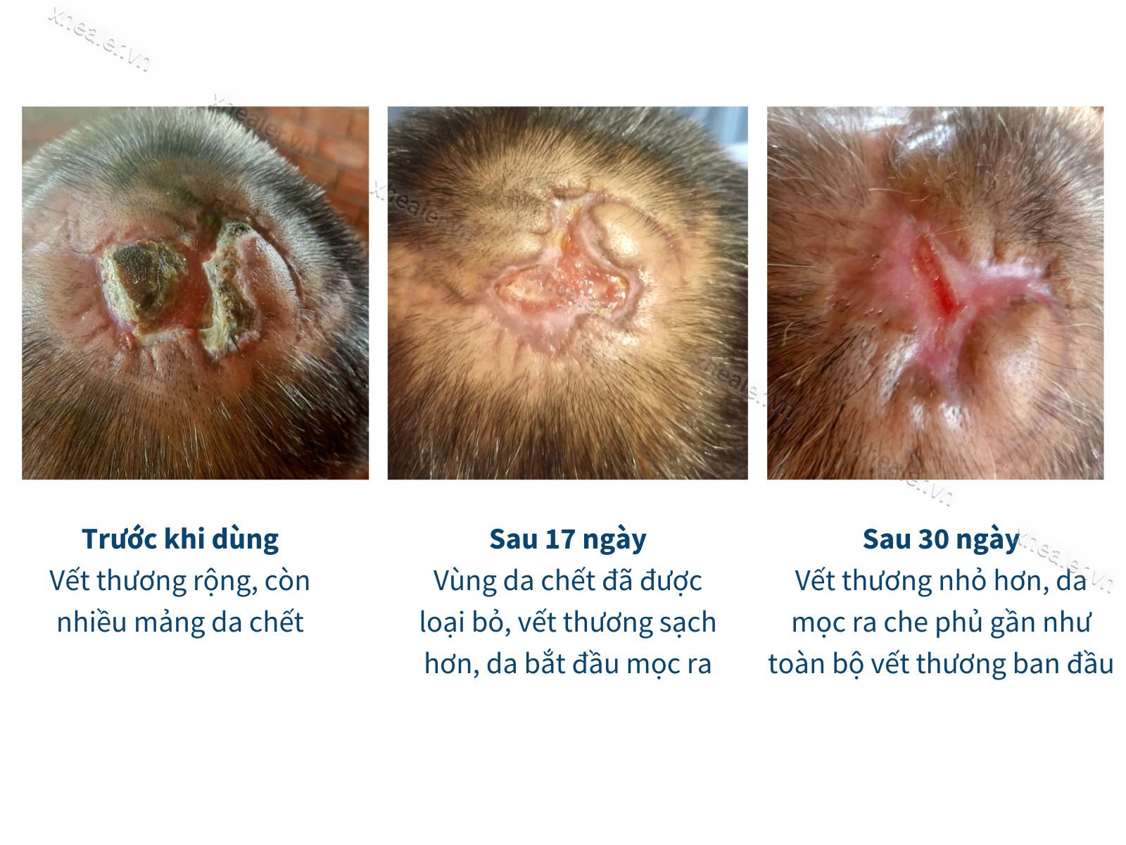 Sau khi tái khám, bệnh nhân được tư vấn sử dụng X-Healer với mục tiêu bổ sung dinh dưỡng chuyên biệt nhằm thúc đẩy qua trình tái tạo mô da mới, kết hợp với chăm sóc vết thương tích cực hơn. Sau gần 30 ngày điều trị, vết thương ở đầu đã lành gần như hoàn toàn.