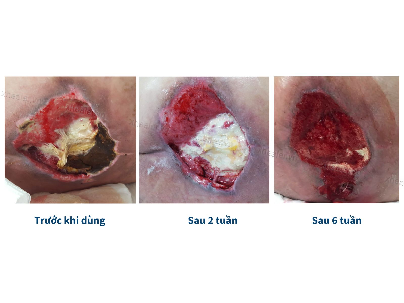 BN sau đây bị đột quỵ xuất huyết não 3 tháng trước gây yếu 1/2 người trái, đái tháo đường 12 năm, tăng huyết áp và rối loạn mỡ máu. Trong thời gian nằm tại nhà, vùng cùng cụt của BN viêm đỏ rồi loét dần, người nhà tự chăm sóc (thay băng, kháng sinh tự mua tiệm thuốc tây), tuy nhiên vết loét to dần, chảy dịch hôi và hoại tử nên được đưa đi khám và nhập bệnh viện. Sau cắt lọc, BN được chẩn đoán vết loét độ 4 - đã sâu tới gân, xương. Sau 6 tuần điều trị tích cực cả ngoại khoa và nội khoa gồm cắt lọc, đặt VAC, điều trị kháng sinh, can thiệp dinh dưỡng qua sonde mũi-dạ dày bằng súp, sữa và X-Healer, vết loét lên mô hạt đầy, sẵn sàng để xoay vạt da.